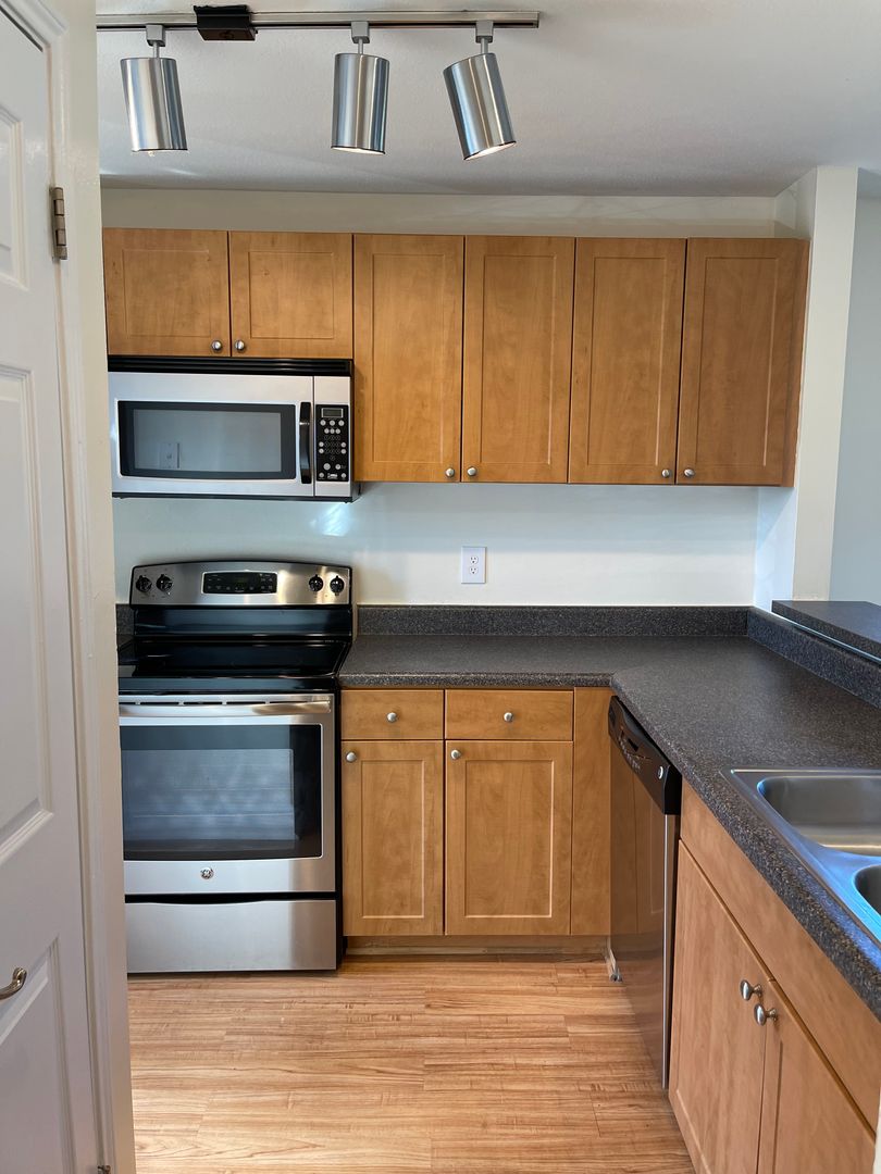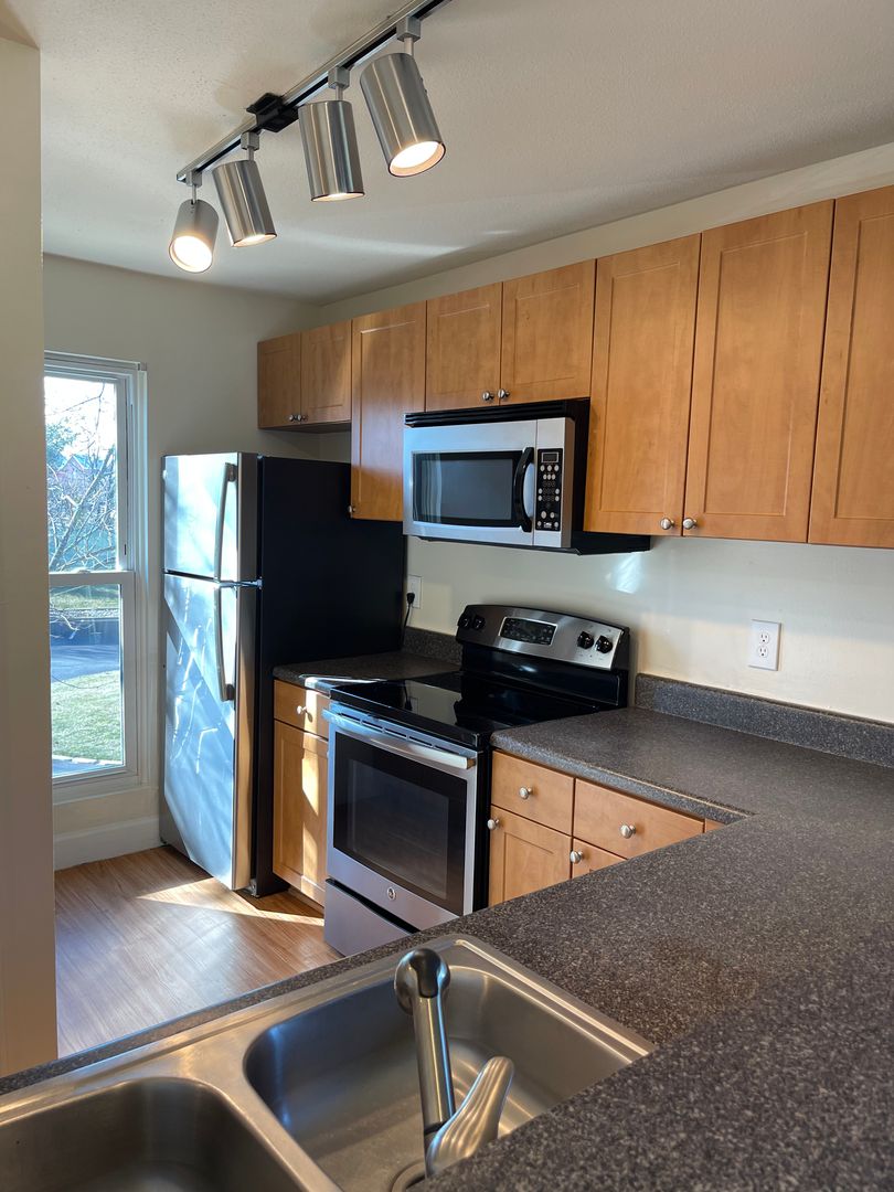 Top Floor Apartment with Stainless Steel Kitchen Appliances and Vaulted Living Room Ceilings