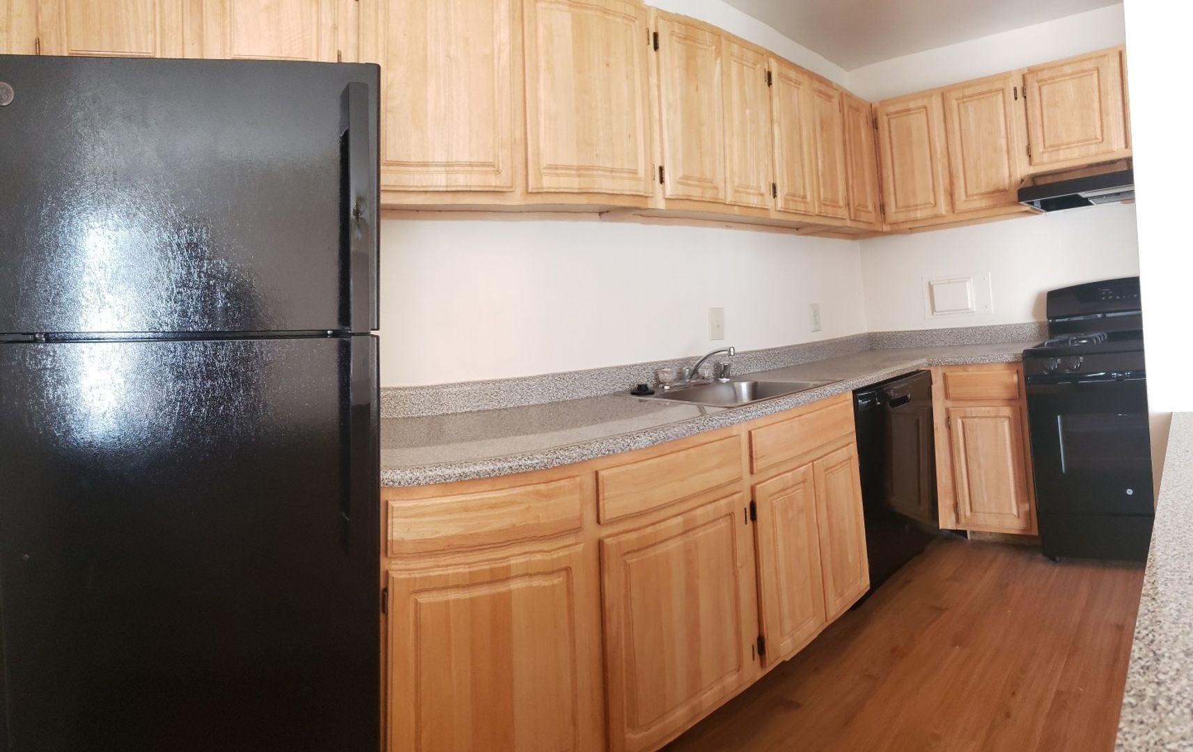 Second-floor apartment with a rear facing balcony for added privacy. Great open floor plan with a breakfast bar! The apartment will have a Formica kitchen countertops and breakfast bar, oak cabinetry, and black appliances.