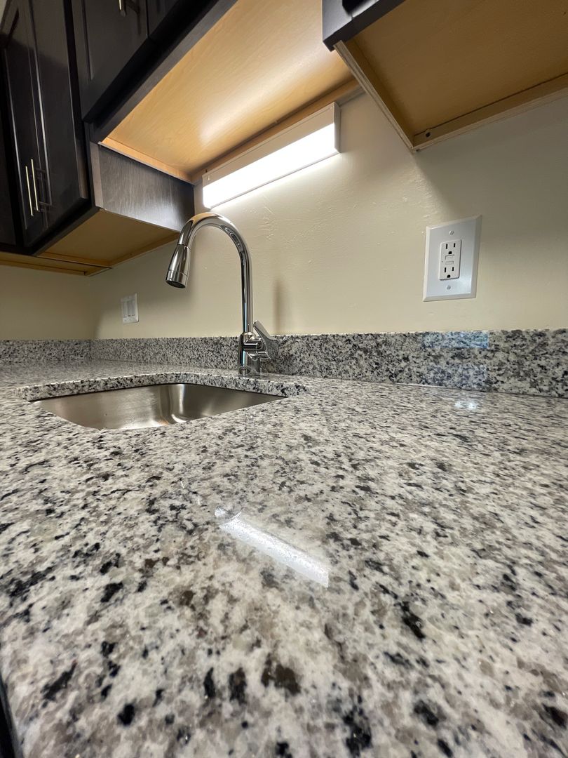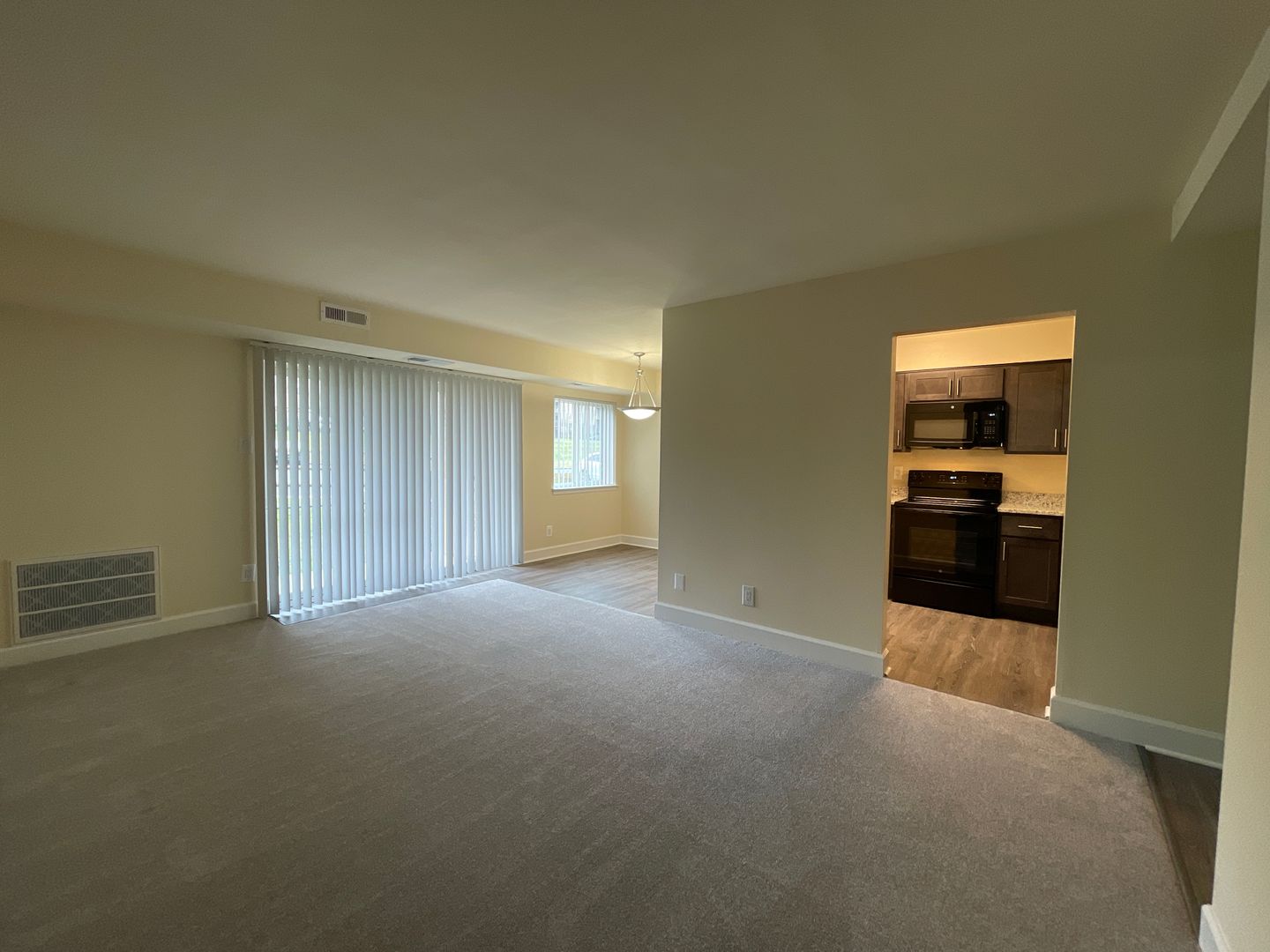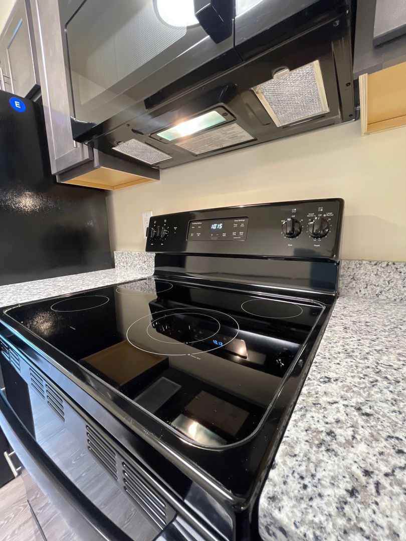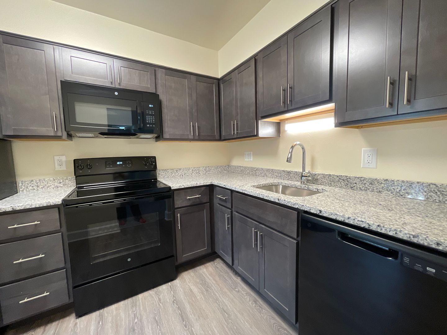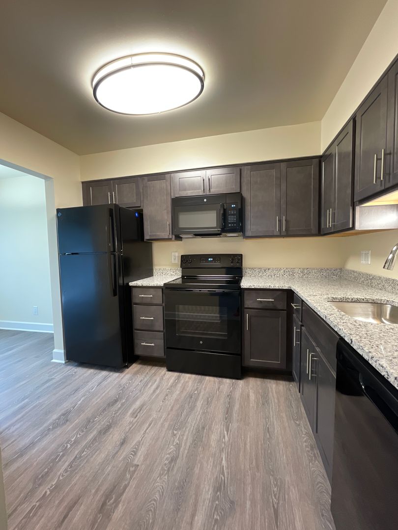 Beautiful 1st floor apartment. Black appliances, microwave, new flooring and carpet (granite and floor color may vary)